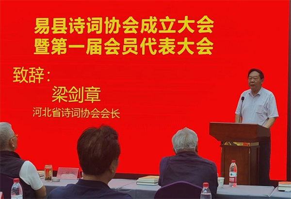 河北省诗词协会副会长兼秘书长梁剑章副会长对易县诗词协会的成立提出了殷切希望,并抒怀赋诗一首: