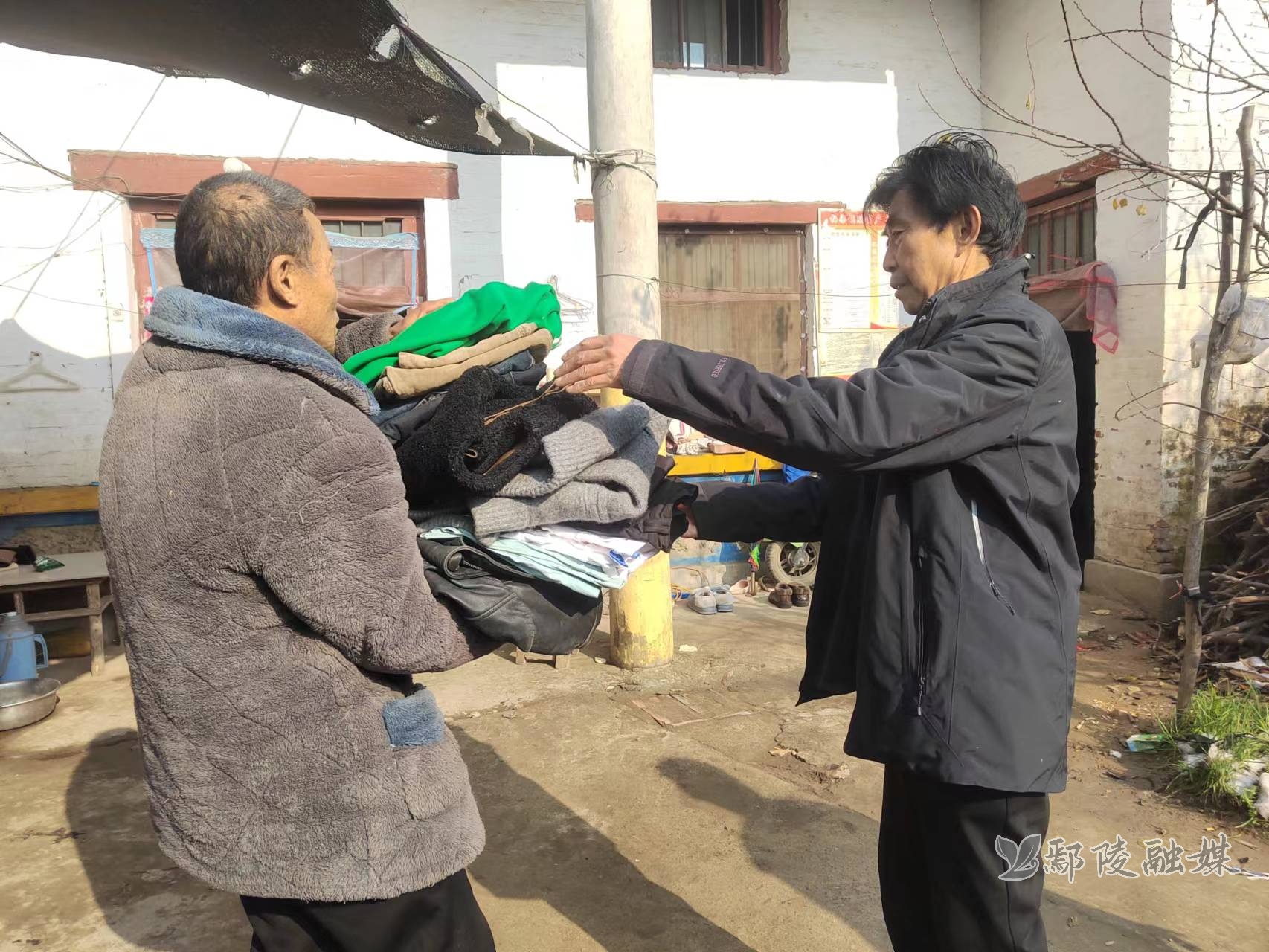 凛冽寒风,冰雪路滑,丝毫阻挡不了送温暖的热情。当日,原鄢陵县政协委员王顺明将自己家中闲置的质量较好、成色较新的90余件过冬衣物,捐赠到圪垱头社区扶贫办工作人员的手中,在社区办公室,工作人员对衣物进行了统一整理、并根据儿童、成人、男女、薄厚进行分别打包、标注,送到贫困户赵群营和侯梅花家中。