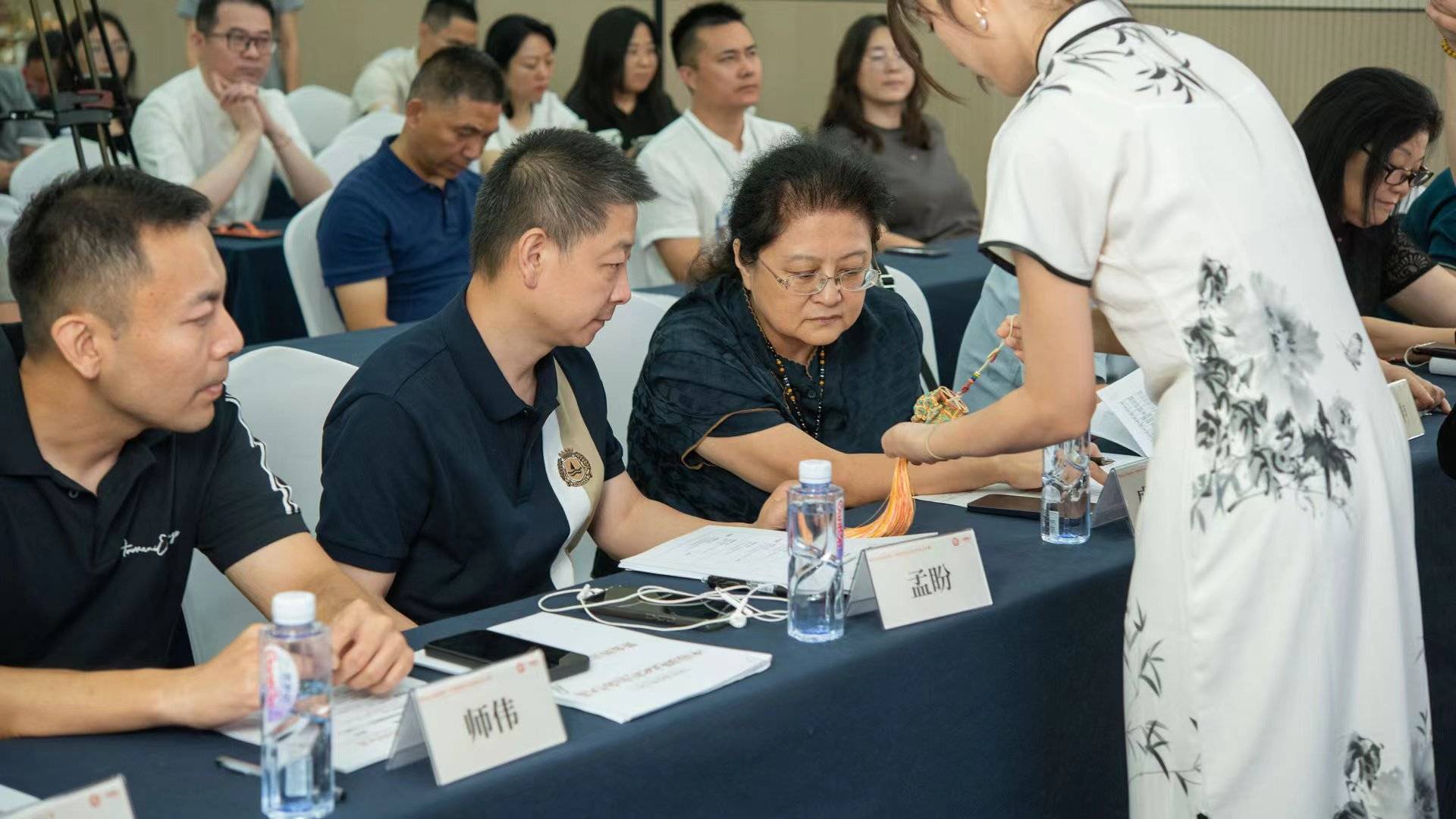 决赛之日,星光熠熠。专业评委团以专业的判断,严谨的态度,从技艺、创意、文化传承等多维度对作品进行评判。结绳组与黄金转运珠组佳作频出。特别是作品《开运鸮珠》,以圆形转运珠象征幸福与圆满,以鸮珠代表胜利与财运,将吉祥寓意融入精美的造型之中,展现出深厚的文化底蕴和独特的艺术魅力,最终获得了评委们的高度赞赏。另外作品《灵猫纳财》与《吉骰》同样出彩且吸睛,前者以灵猫的灵动姿态寓意招财进宝,将传统文化中对灵猫的吉祥寓意与现代审美巧妙融合;后者以骰子的随机性象征着好运降临,将传统文化中对吉利数字的期许融入作品设计,皆体现出创作者对传统结绳艺术的深刻理解及对美好生活的期许,展现出当代手工艺传承者旨在传统文化与现代艺术之间构建起一座桥梁,将传统文化的精髓融入当代艺术创作,赋予作品更深层的文化内涵。现场评选照片