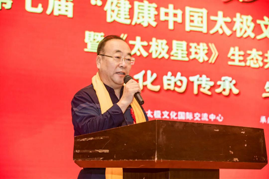 中国中小企业新零售专委会执行会长、湖北宜昌战狼企业管理咨询有限公司总裁殷祖碧先生致辞。殷总表示从第一次到武当山学习太极以来,就决定要将太极文化植入自己的企业,让更多的伙伴身心灵受益,今天也带着众多的合作伙伴参加本次论坛,希望共同将《太极星球》新零售联盟做大做强!
