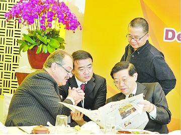 “这是我们的报纸,专门为本次论坛制做的特刊。”当国务院发展研究中心主任李伟把中国经济时报介绍给本次论坛外方主席时,陶氏化学公司(DOW)董事长兼首席执行官利伟诚(AndrewN.Livers)说:“我们很高兴能够参与这次论坛。”