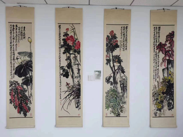 这项展览虽然作品只有 100 余幅,但却很精,很具代表性。从题材上讲,既有花卉,也有山水,还有人物;从材质上讲,既有纸本的,也有泥金绢本的,还有绫本的;从创作主体上讲,既有独立完成的,也有合作完成的;从来源上讲,既有私人珍藏的,也有机构收藏的,既有国(境 ) 内的,也有来自日本、香港的......可谓是展览虽小,内涵却大;场地虽简,品味却高。