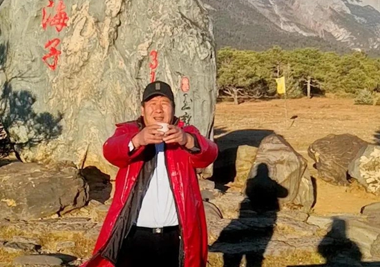 山东淄砚复兴传承人、古砚鉴赏家谭峰在玉龙雪山叩拜曹加勇大师门庭