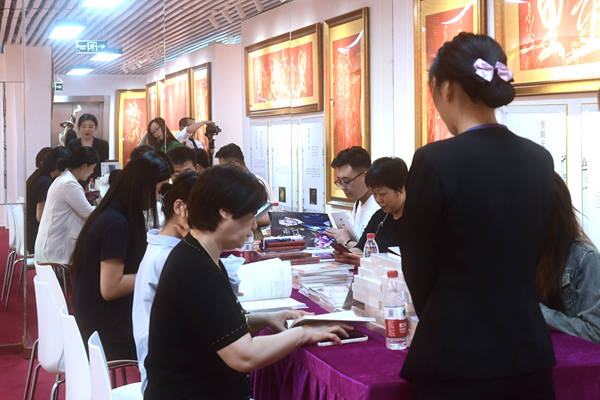 启动仪式之后,石子义先生带领现场的广大观众观展,并亲自作为讲解员一一给大家介绍了每幅书法作品及每首诗的奥妙所在。一时之间,观众云集,蜂拥相随。随后石子义先生还接受了媒体的专访。畅谈其对经营企业与艺术创作的平衡以及自身的艺术创作心得等。