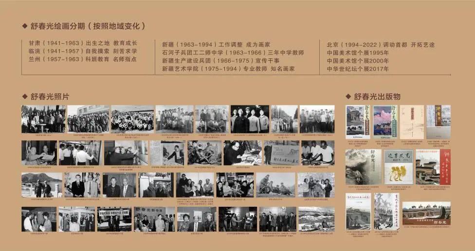 舒春光在新疆工作三十年,作为曾在新疆艺术学院任教近20年的老教授与新疆题材代表性画家,他长期植根于这片深厚博大的沃野之中,作品以大漠风情、雅丹地貌、戈壁旷野,山峦雪峰、森林草原、民族生活为主题,不仅具有足可观赏的美学价值,而且富于可资借鉴的哲学意义,在中国美术界产生深远影响。