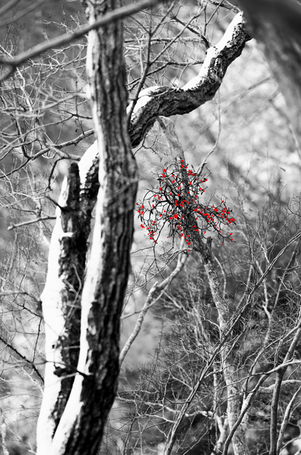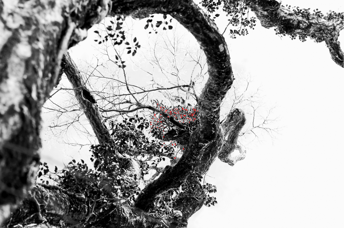 鄭相起摄影艺术家镜头下的槲寄生摄影作品之所以受到瞩目,魅力在于它能使人们联想到一幅由红色斑点绘成的耀眼的水墨画。